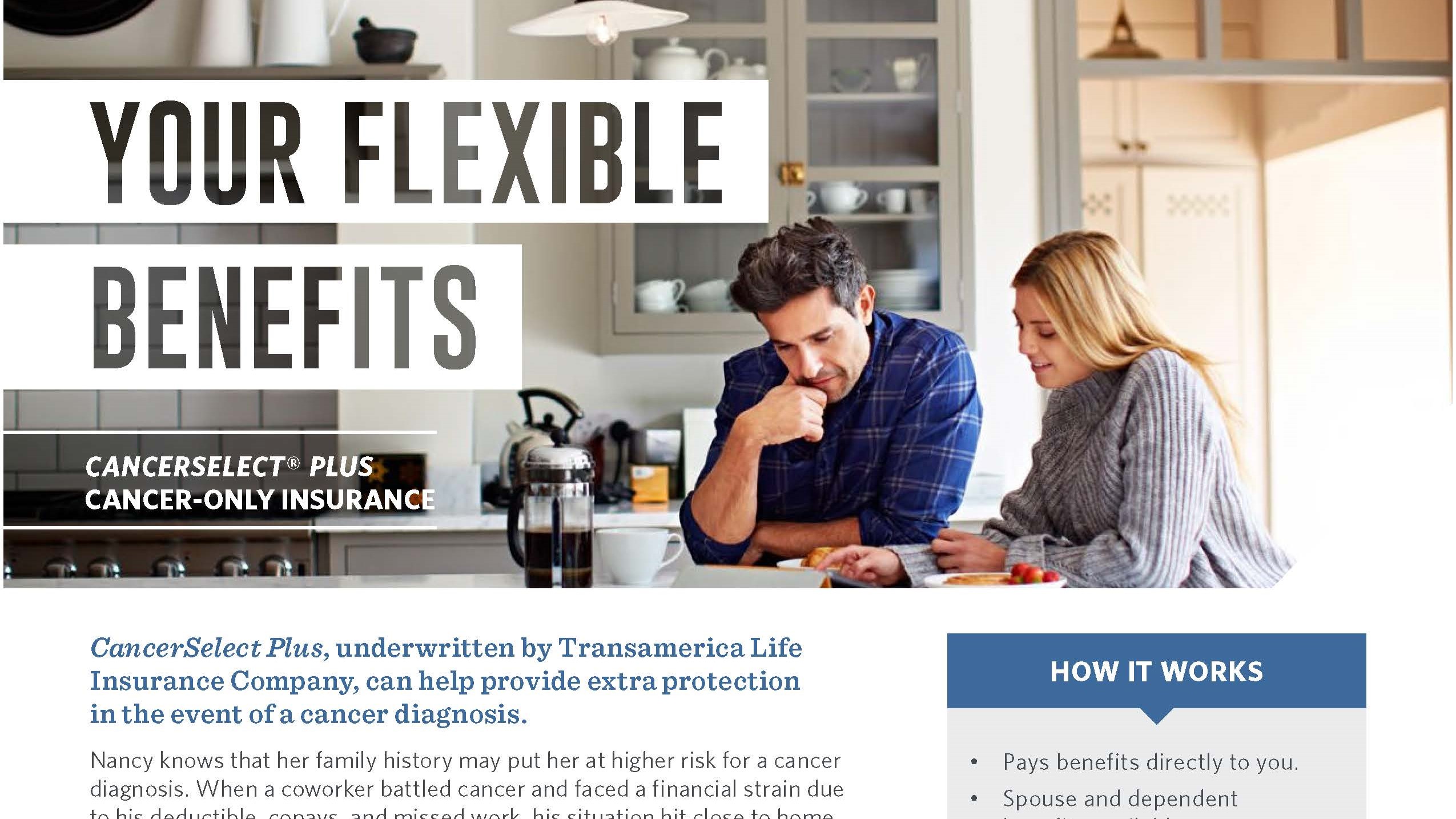 - Lump sum benefit at diagnosis followed by a schedule of benefits for care associated with cancer treatment. See benefit brochure for the full list of benefits.